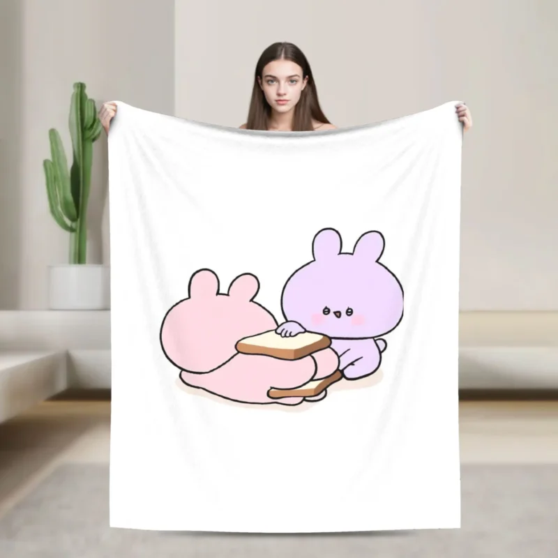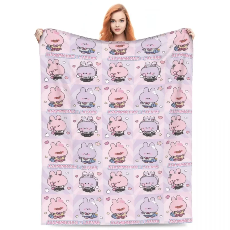 Asamimichaan Throw Blanket Cute Bunny Rabbit Cartoon Soft Plush Blanket Wrap yourself in cozy cuteness with this ultra-soft Asamimichaan Throw Blanket. Featuring the popular TikTok-famous bunny rabbit character in a cute cartoon design, this Asamimichaan Throw Blanket brings fun kawaii style and luxurious warmth to your couch, bed, or favorite reading spot. Made with high-quality…