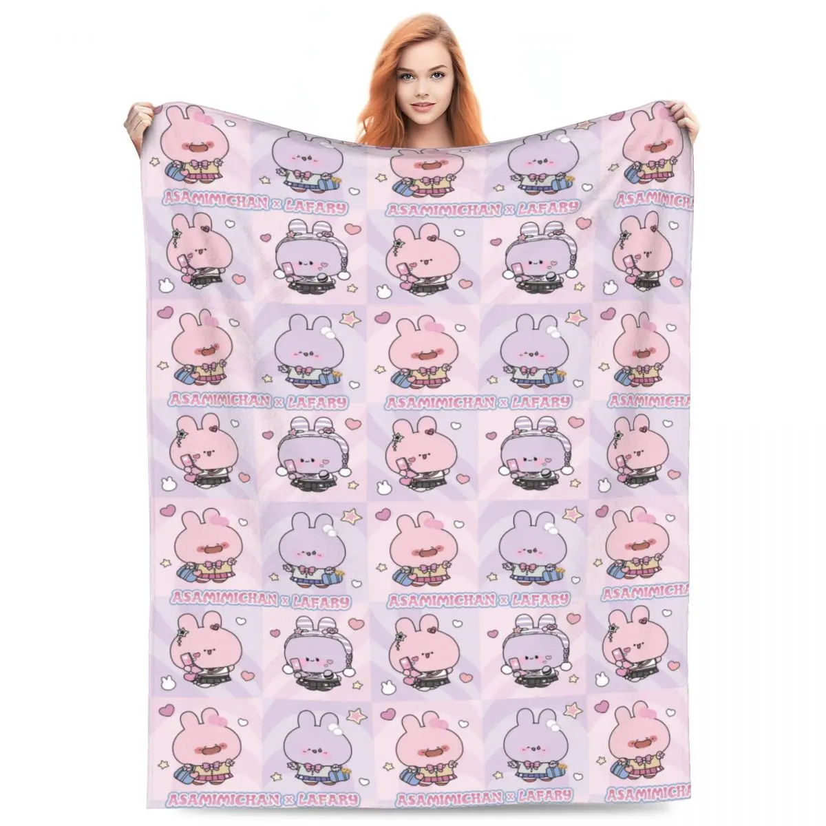 Wrap yourself in warmth and cuteness with this adorable Asamimichaan Fleece Blanket! Featuring the beloved Asamimichaan in charming poses with big sparkling eyes and soft pastel colors, this ultra-soft fleece blanket is perfect for cozy nights, movie time, naps, or decorating your room with kawaii vibes.