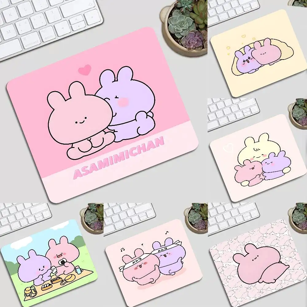 - Adorable Asamimichaan Design โ Features Asamimichaan in multiple cute gaming-themed poses with big sparkling eyes across the mousepad.