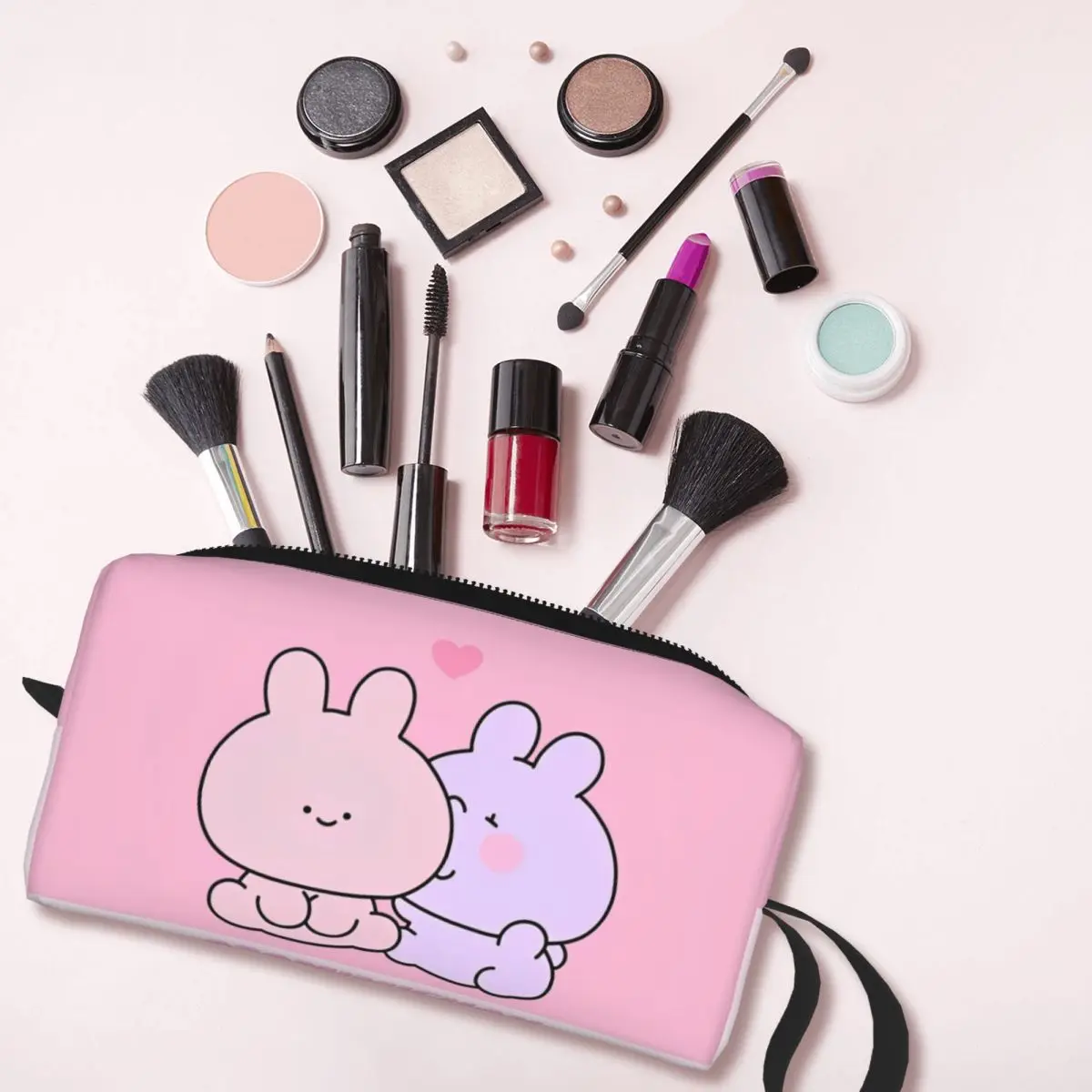 Organize your beauty essentials with adorable charm using this Asamimichaan Makeup Bag. Featuring the popular TikTok-famous bunny rabbit character in a cute cartoon design, this Asamimichaan Makeup Bag offers stylish storage for makeup, skincare, toiletries, or small accessories. Made with high-quality durable fabric that is water-resistant and easy to clean, the Asamimichaan Makeup Bag features a smooth zipper closure and spacious interior. The vibrant print adds a fun kawaii touch while keeping your items secure. Ideal for travel, daily use, or gifting. Perfect for fans who love Asamimichaan Makeup Bag.