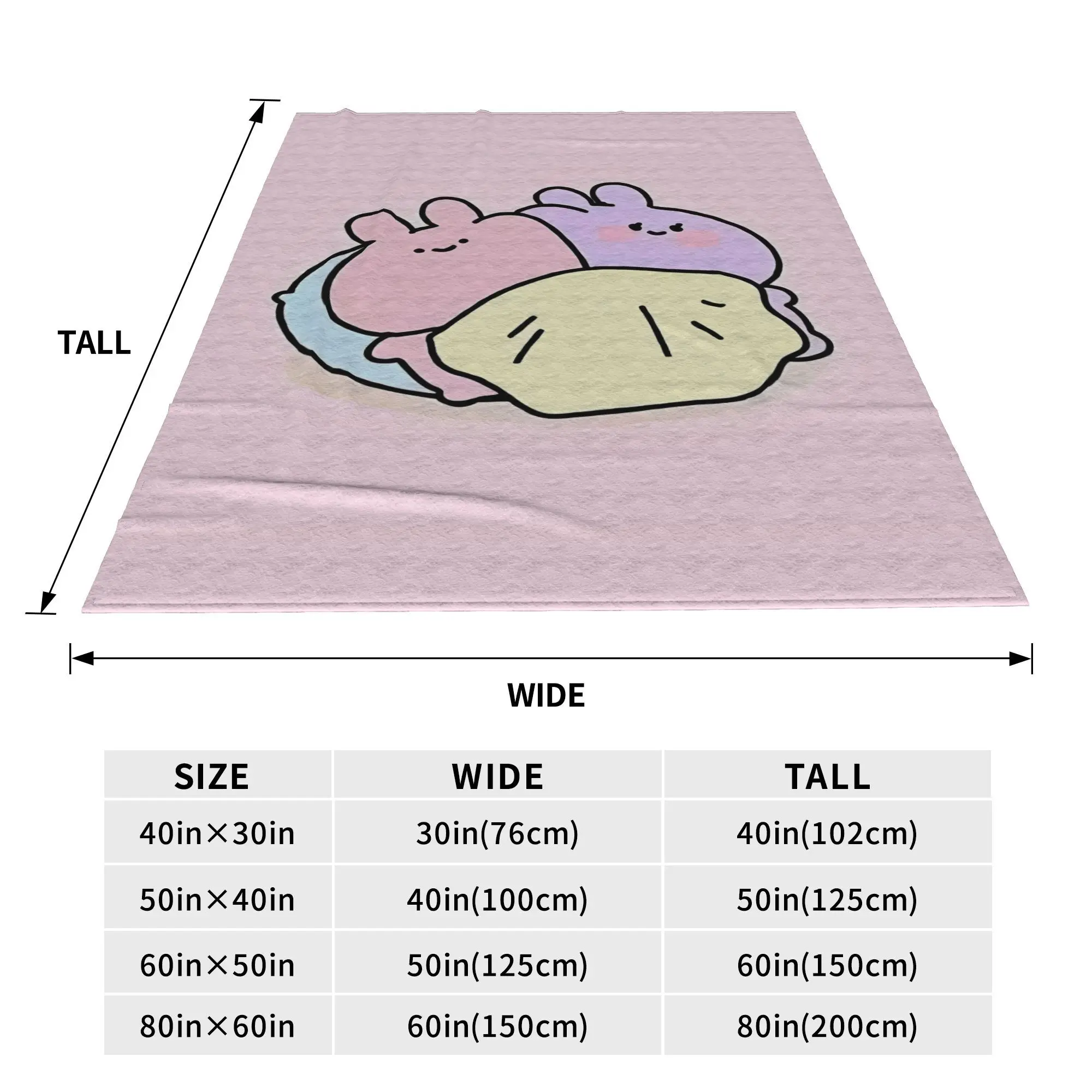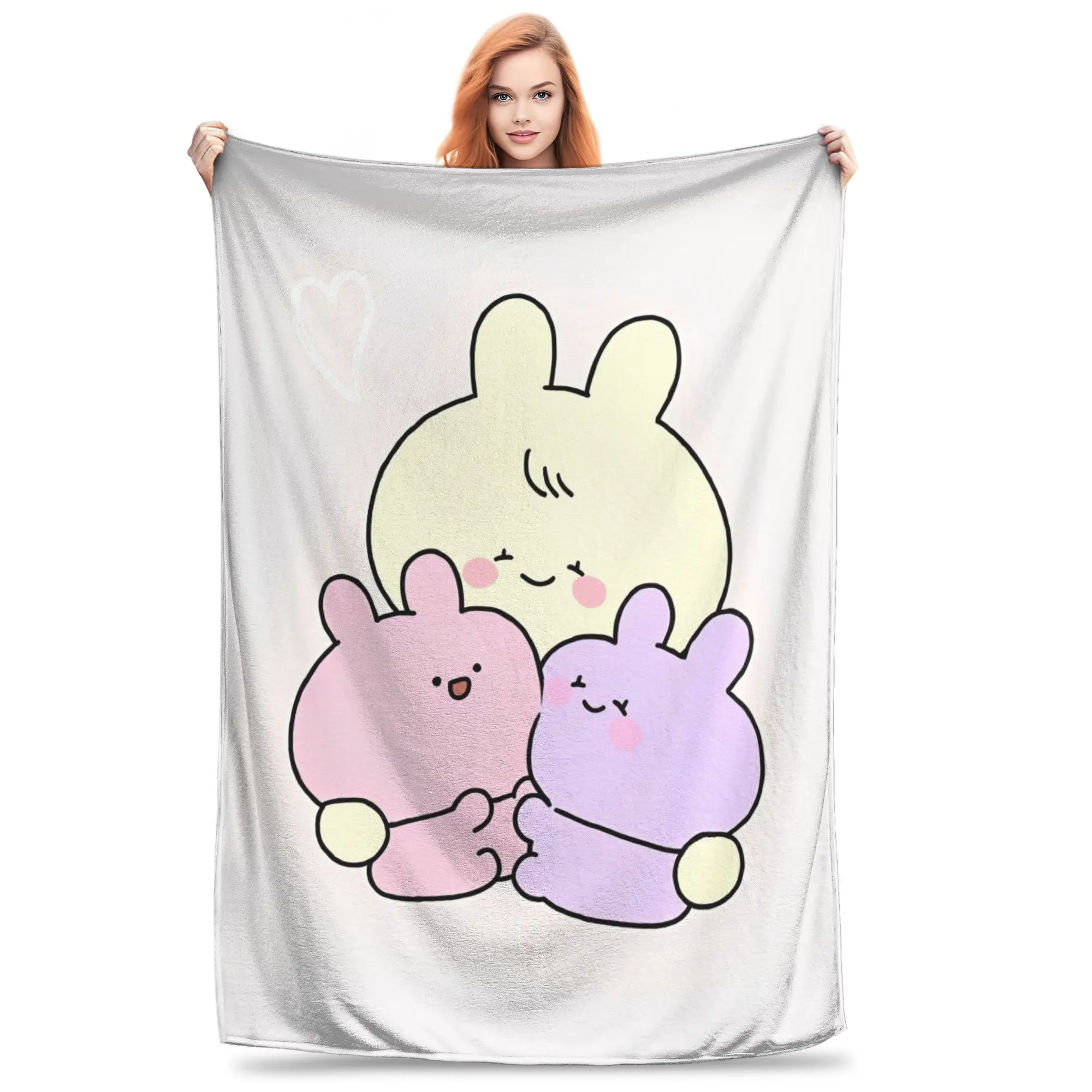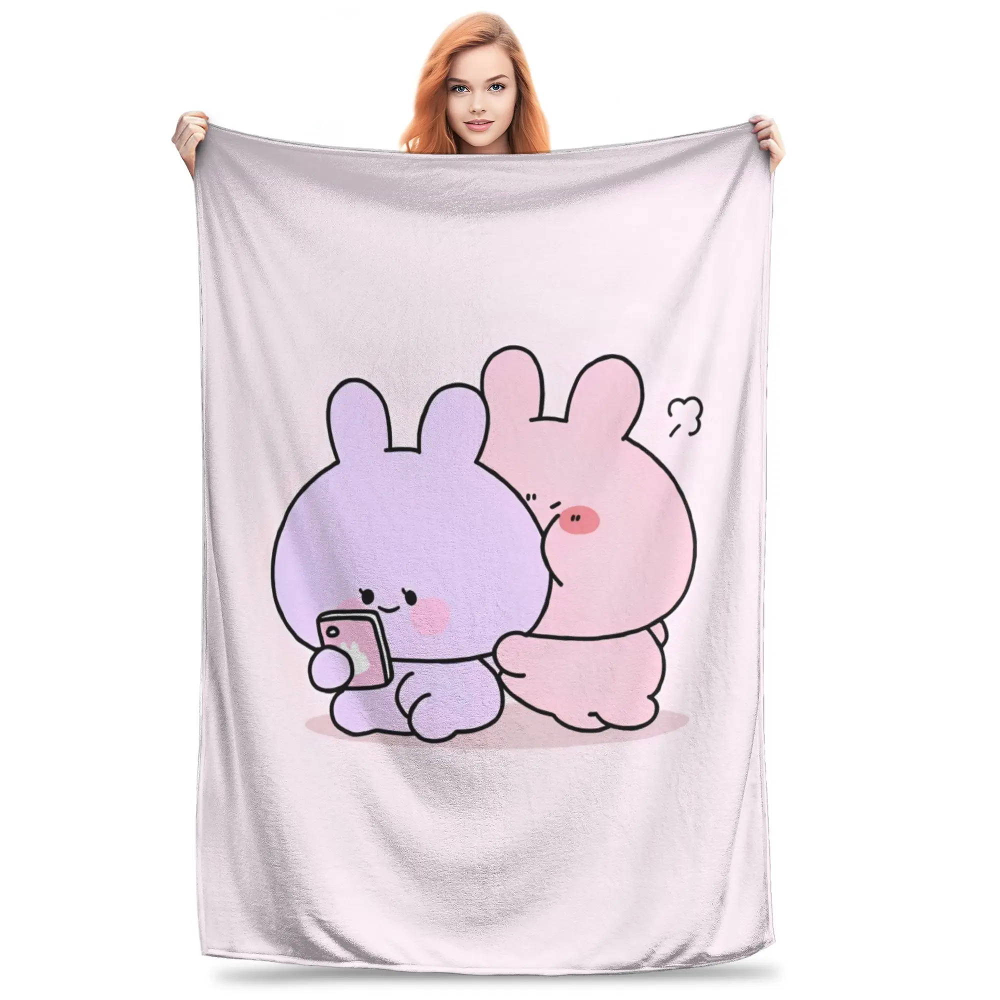 Wrap yourself in cozy cuteness with this ultra-soft Asamimichaan Throw Blanket. Featuring the popular TikTok-famous bunny rabbit character in a cute cartoon design, this Asamimichaan Throw Blanket brings fun kawaii style and luxurious warmth to your couch, bed, or favorite reading spot. Made with high-quality plush fabric that is gentle on skin and durable for everyday use, the Asamimichaan Throw Blanket features vibrant, fade-resistant print. Lightweight yet warm, it is perfect for snuggling or as stylish home decor. Ideal for fans who love Asamimichaan Throw Blanket