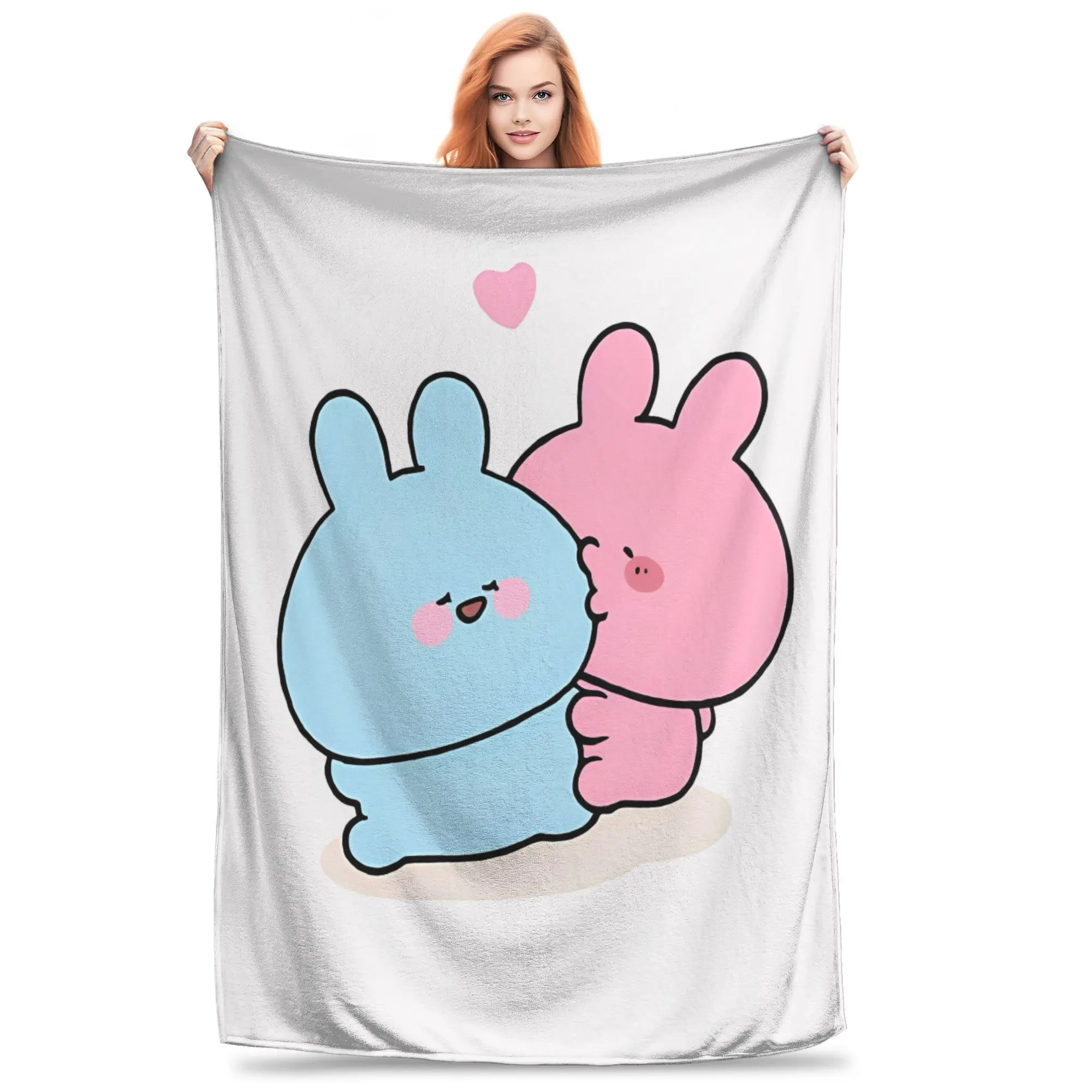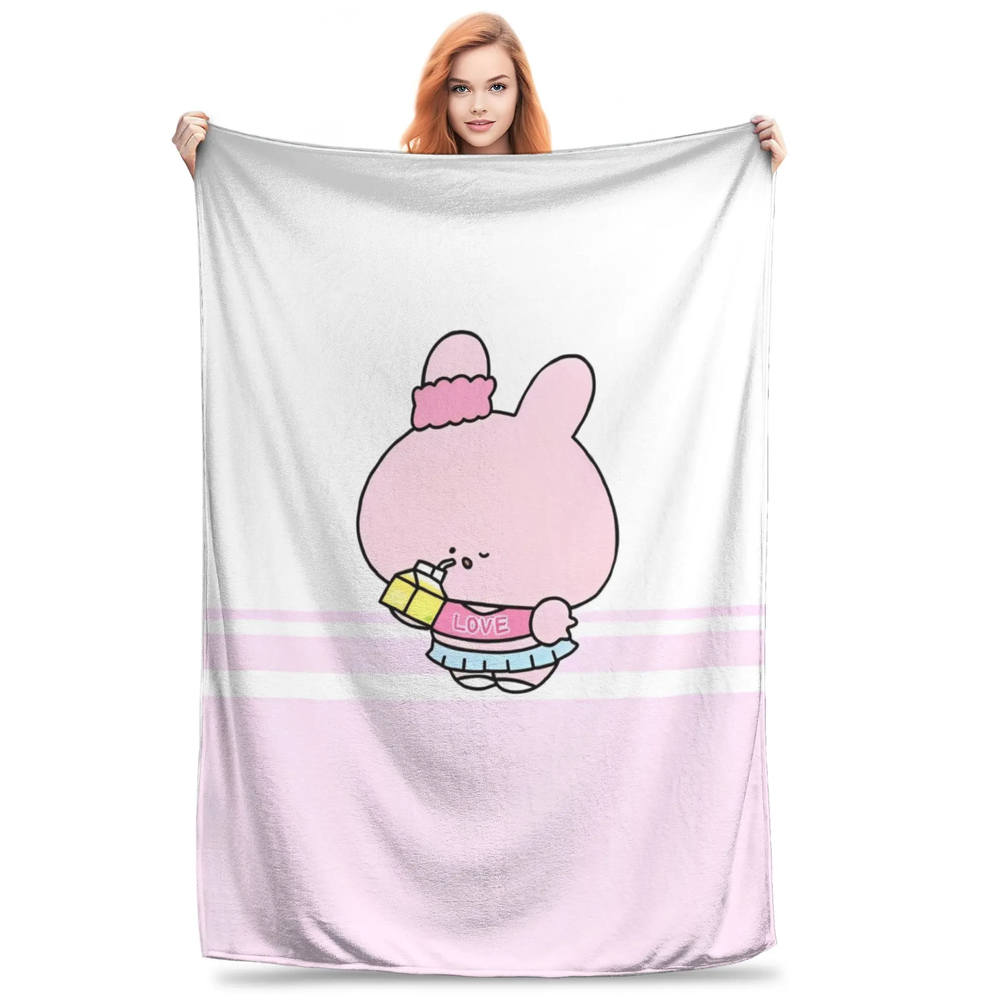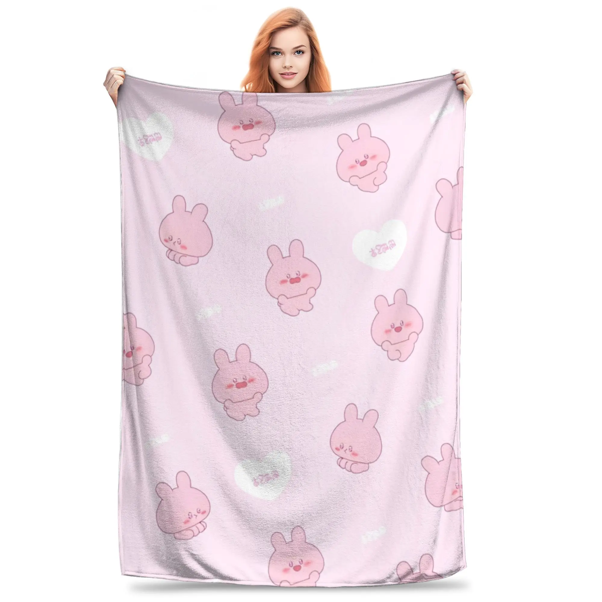 Wrap yourself in cozy cuteness with this ultra-soft Asamimichaan Throw Blanket. Featuring the popular TikTok-famous bunny rabbit character in a cute cartoon design, this Asamimichaan Throw Blanket brings fun kawaii style and luxurious warmth to your couch, bed, or favorite reading spot. Made with high-quality plush fabric that is gentle on skin and durable for everyday use, the Asamimichaan Throw Blanket features vibrant, fade-resistant print. Lightweight yet warm, it is perfect for snuggling or as stylish home decor. Ideal for fans who love Asamimichaan Throw Blanket