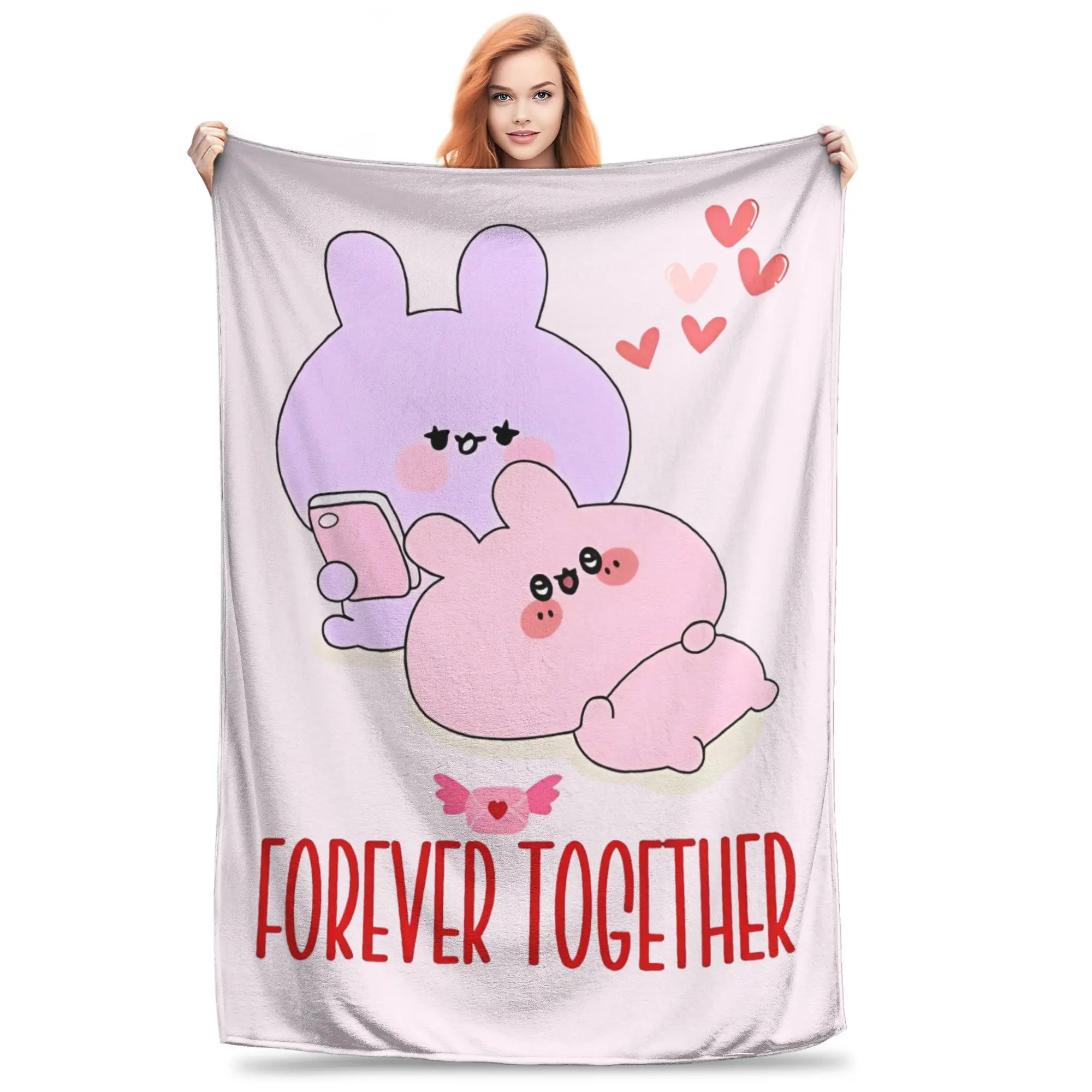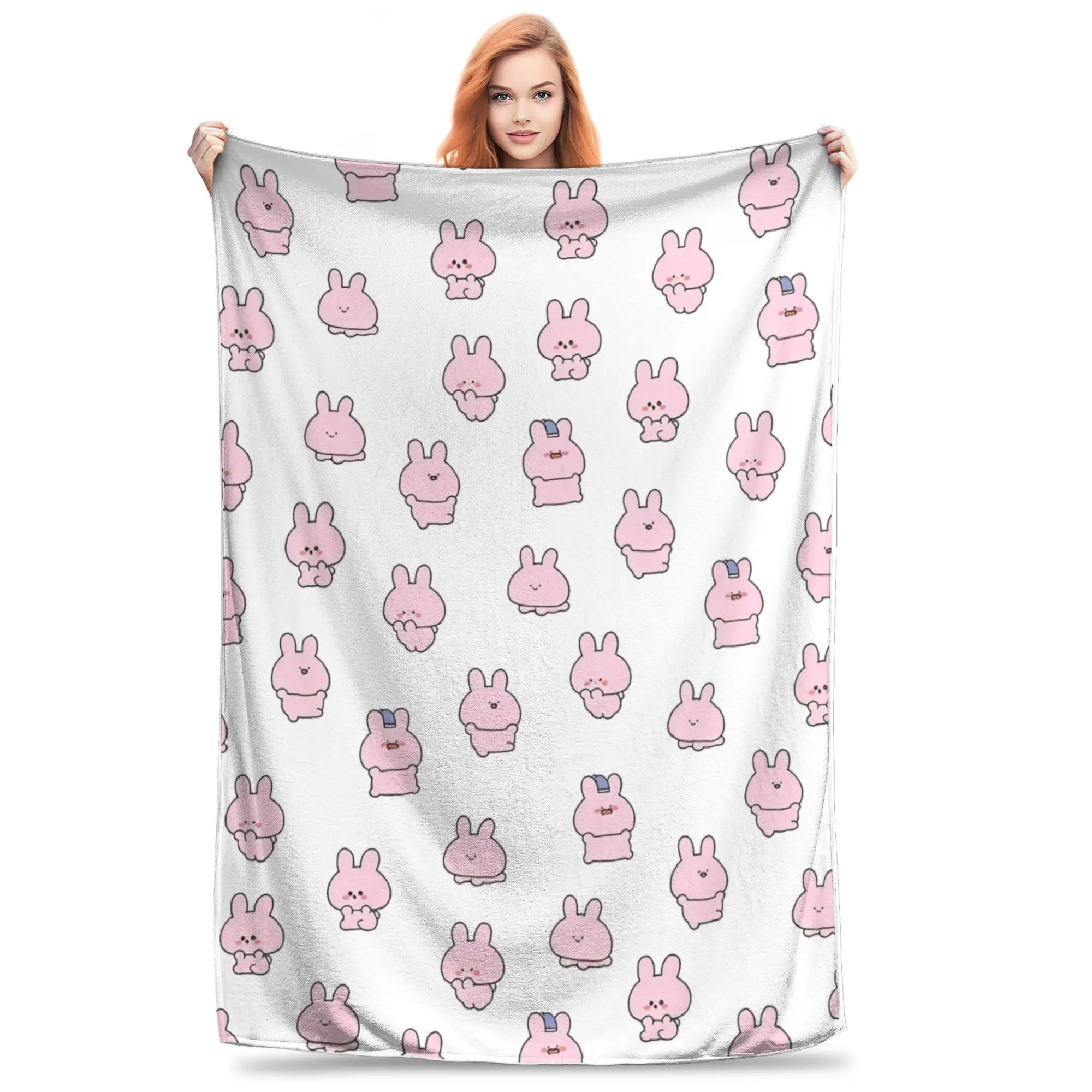 Asamimichaan Throw Blanket Cute Bunny Rabbit Cartoon Soft Plush Blanket
