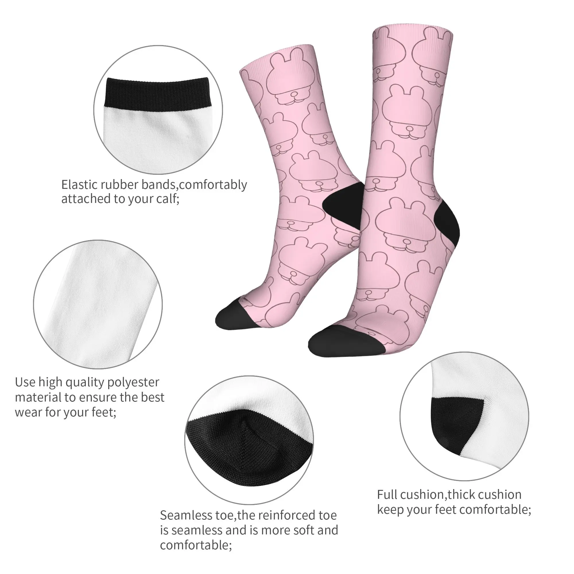 Add extra cuteness to your everyday look with these adorable Asamimichaan Unisex Socks! Featuring the beloved Asamimichaan in charming poses with big sparkling eyes, these soft and comfortable ankle socks are perfect for all genders. Made from premium cotton-blend fabric, they offer great breathability and a relaxed fit for daily wear, lounging, or casual outings.Bullet Points: