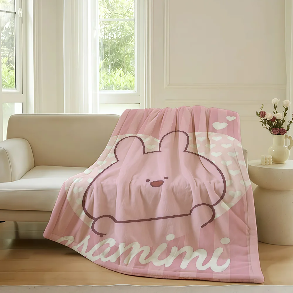 - Official Asamimichan Soft Blanket design with cute bunny rabbit artwork