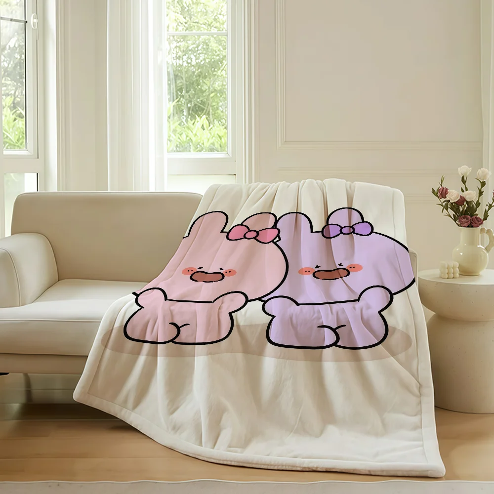 Asamimichan Soft Blanket Cute Bunny Rabbit Cartoon Plush Throw Blanket