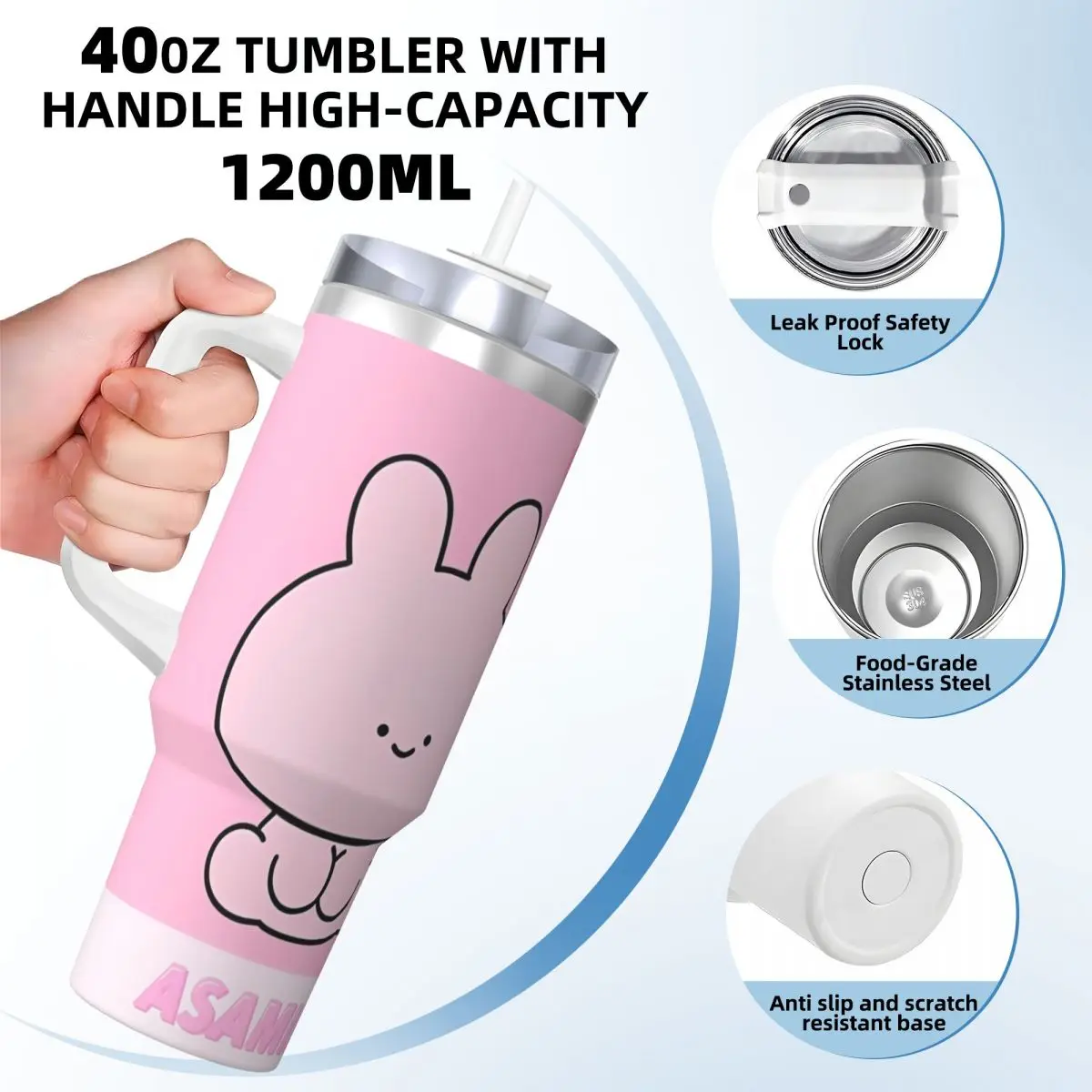 Asamimichans Tumbler Cute Bunny Rabbit Cartoon Insulated Drink Cup