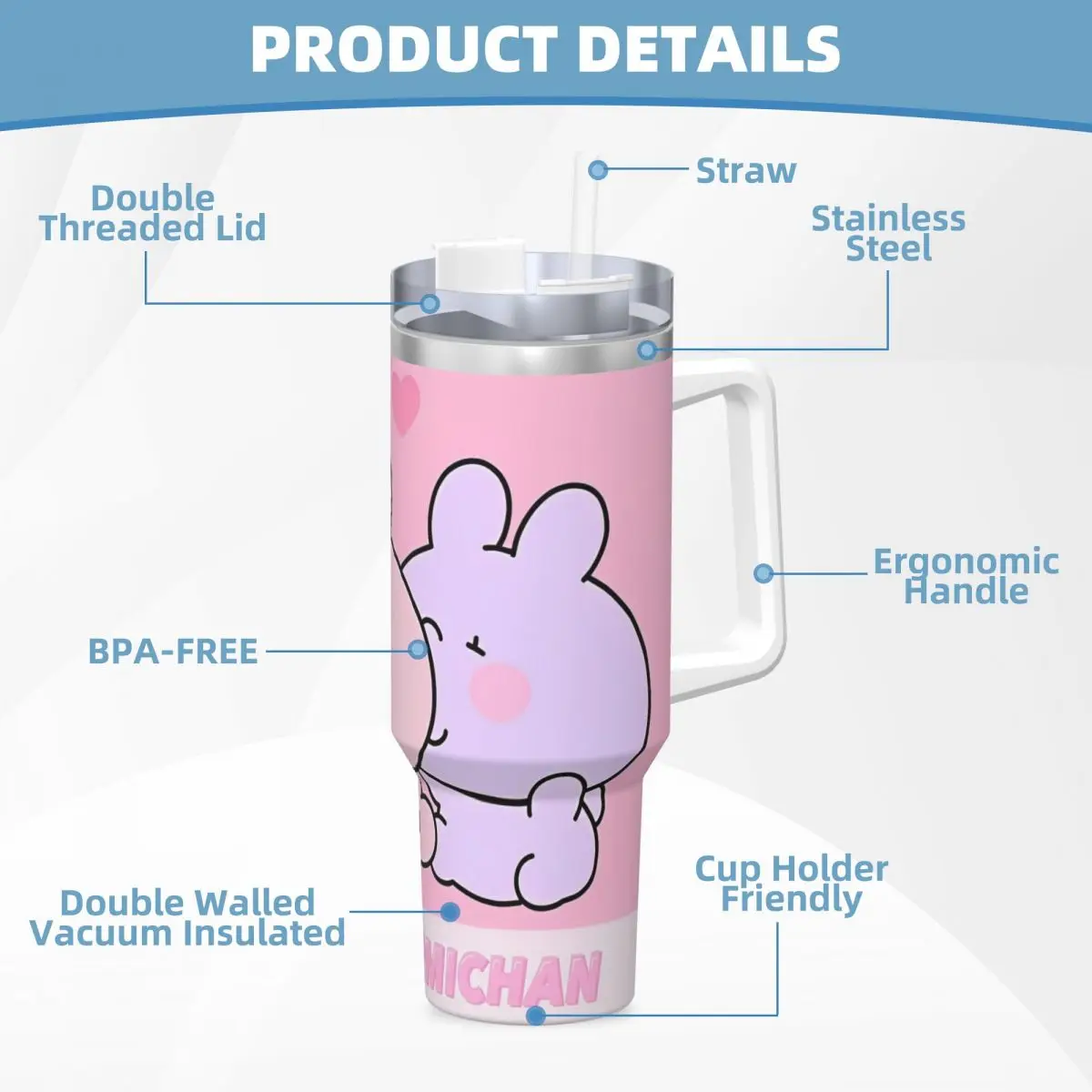 - Official Asamimichans Tumbler design with cute bunny rabbit artwork
